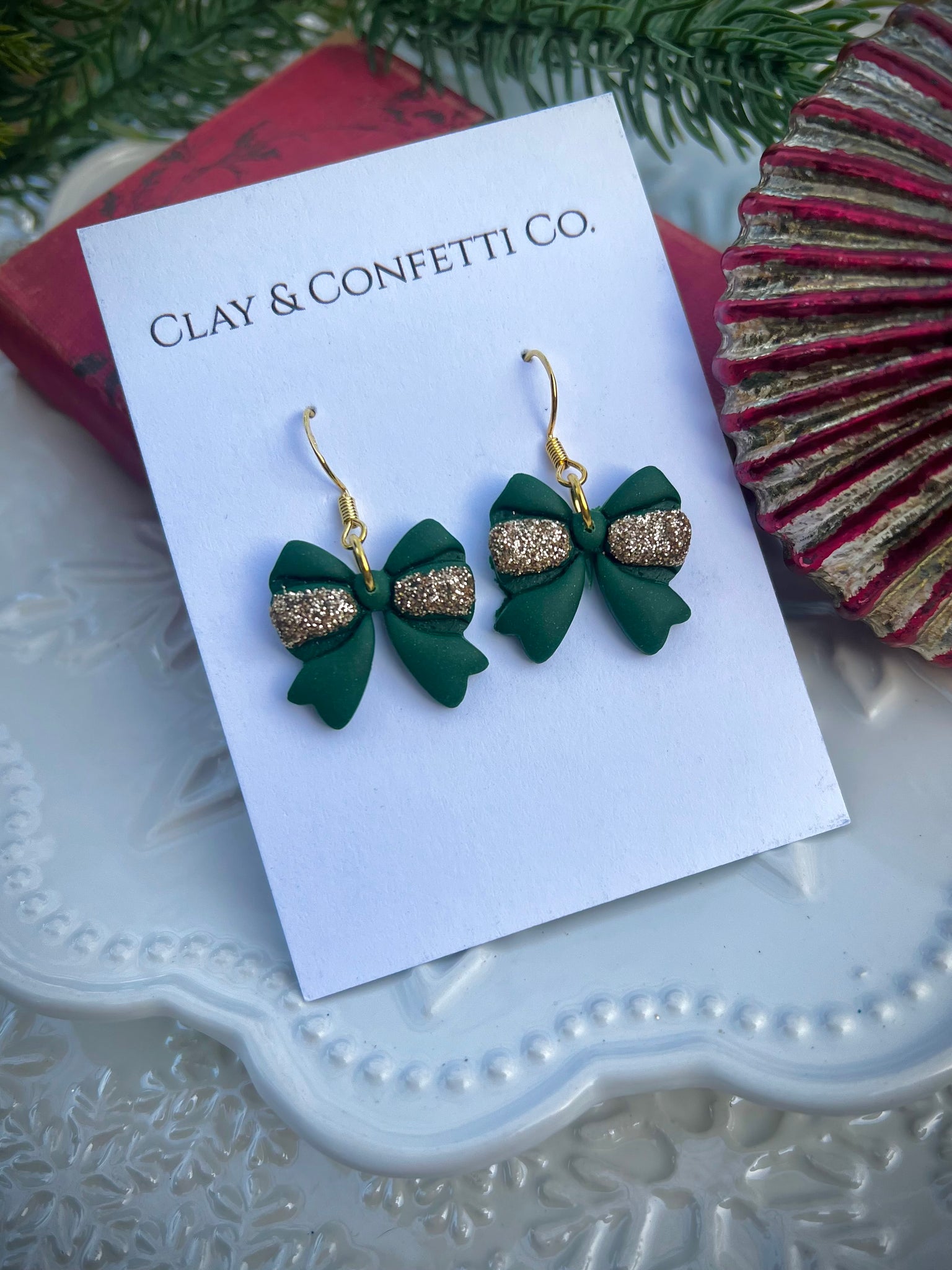 Green with gold bow dangle