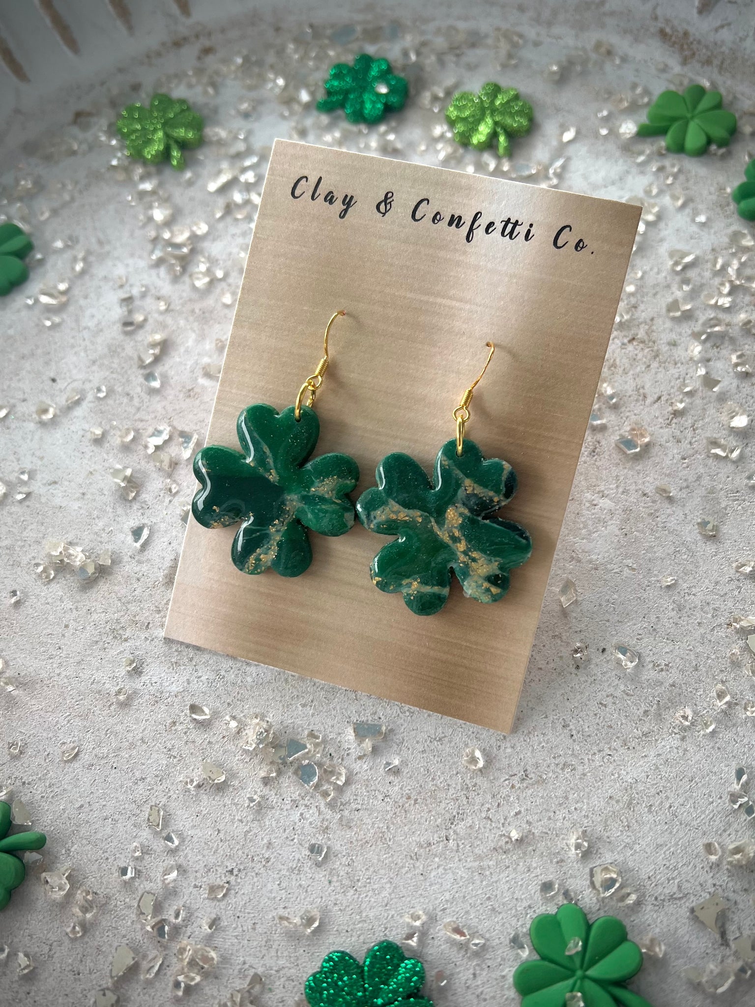 Faux emerald shamrock dangle