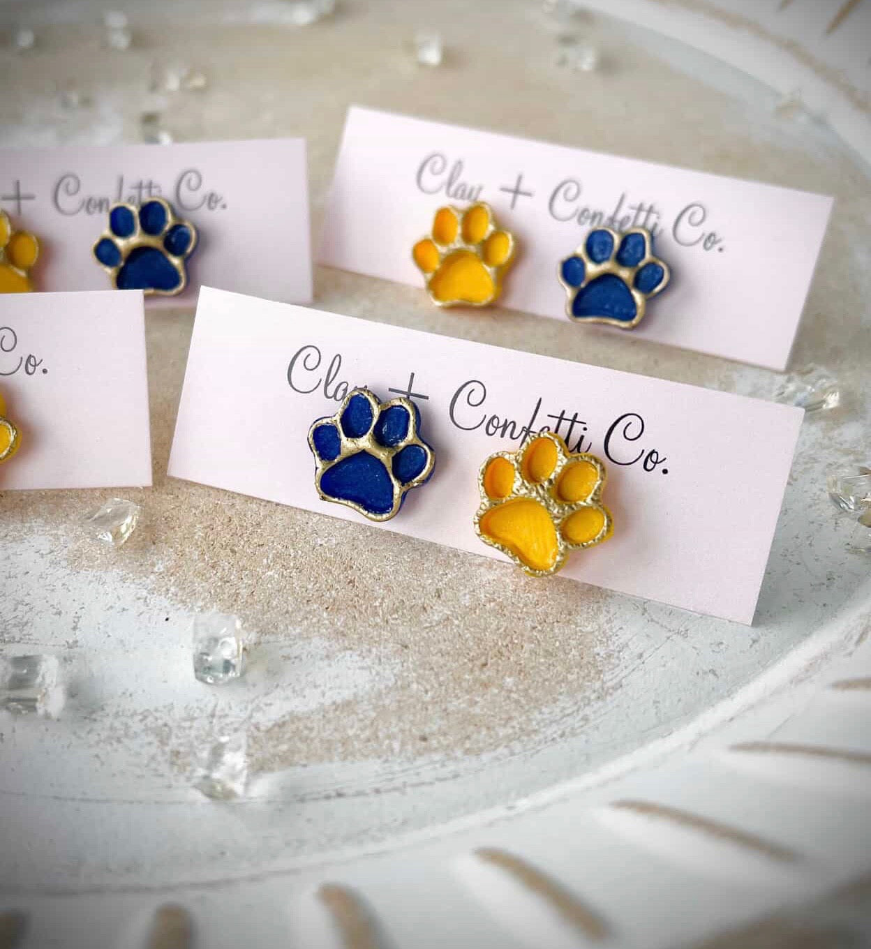 Yellow & blue paw stud